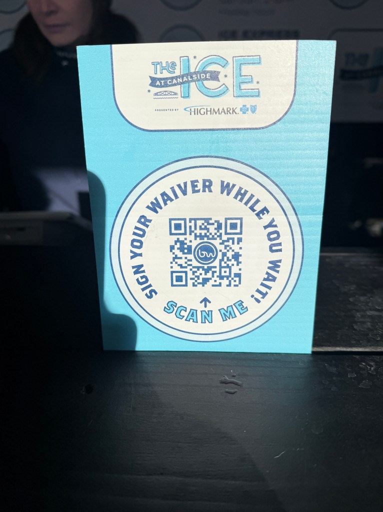 It was no surprise that there was a nice crowd of people at the rink. It had been a while since I’d been to Canalside’s ice rink, and it didn’t take long to refamiliarize myself. Upon entering the admissions and rental pavilion, I went to the cashier and showed my admissions voucher. I was given a blue “coin” for skate rental and asked to fill out the online waiver form. I then exchanged my blue coin for a pair of size 8 ice skates.