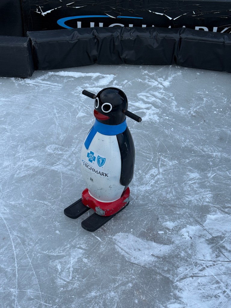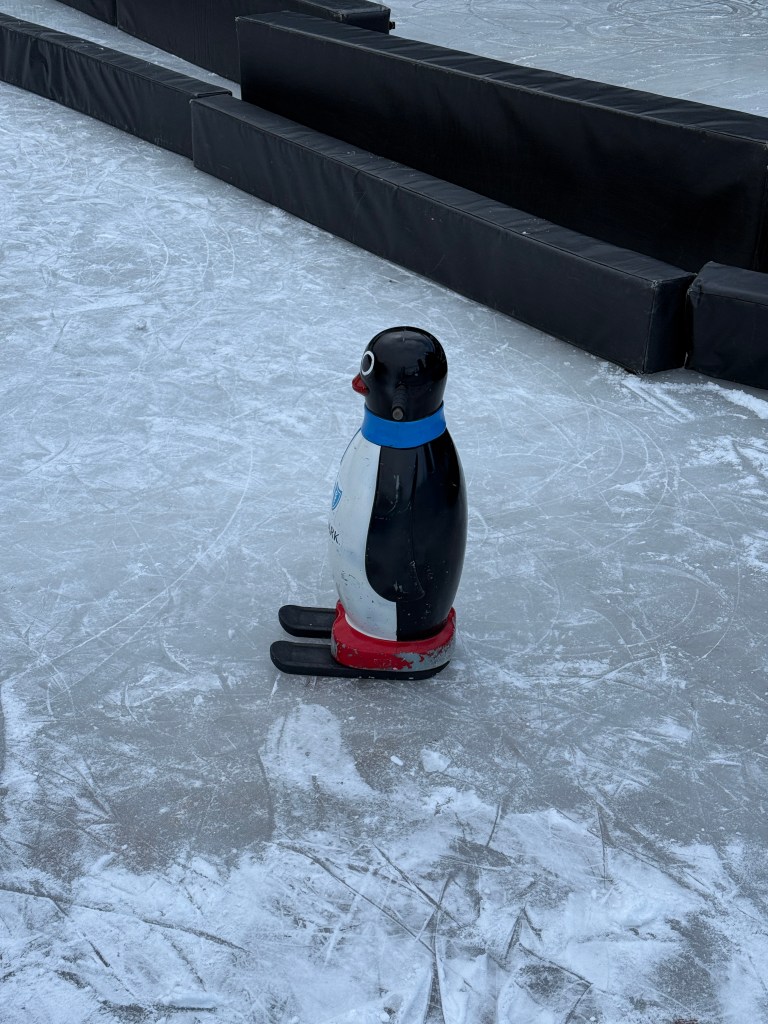 I saw teenagers huddling, couples cuddling, and moms and dads taking pictures of their kiddos. I saw penguin helpers and ice walkers assisting little people along their icy paths. I enjoyed seeing the skaters who skated with ease, turning and spinning about. Maybe one day, I could do the same. As I made it around the ice, I became more confident and at ease.