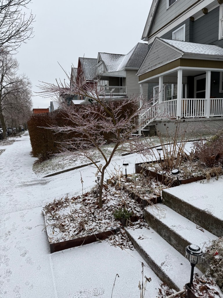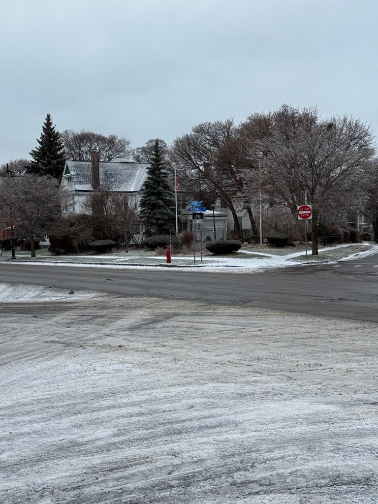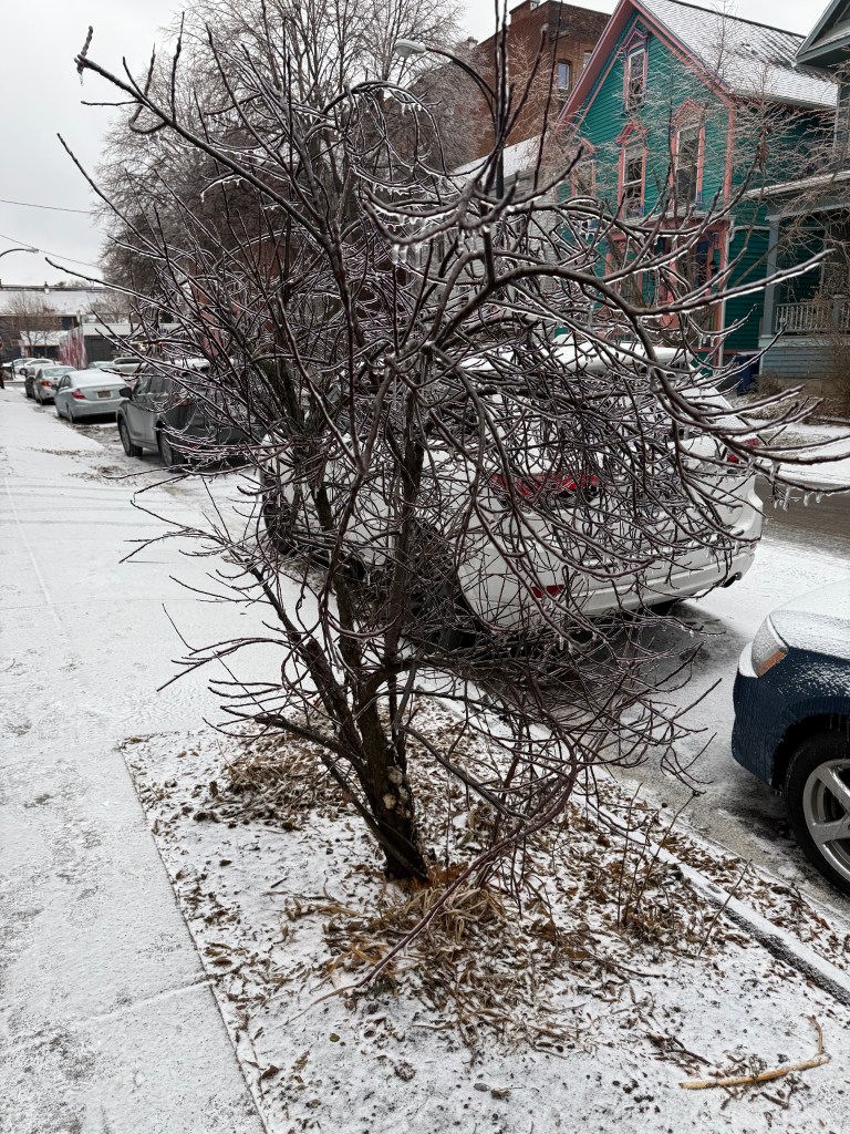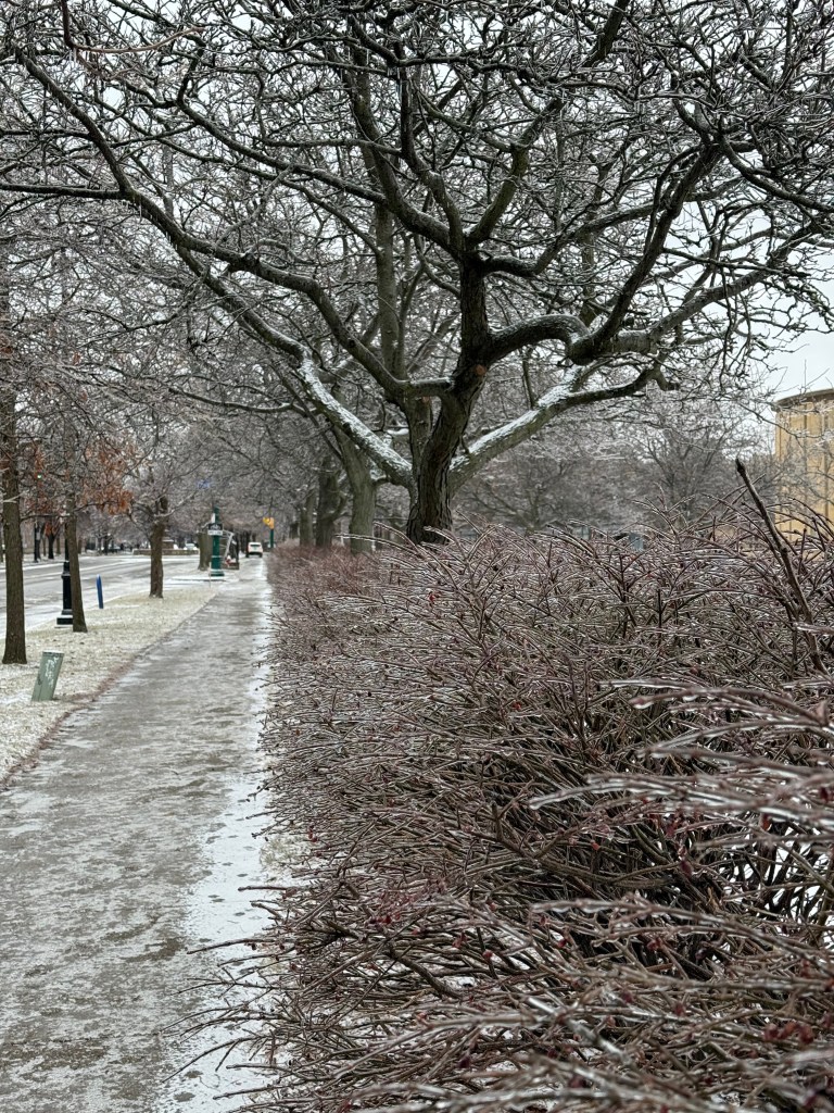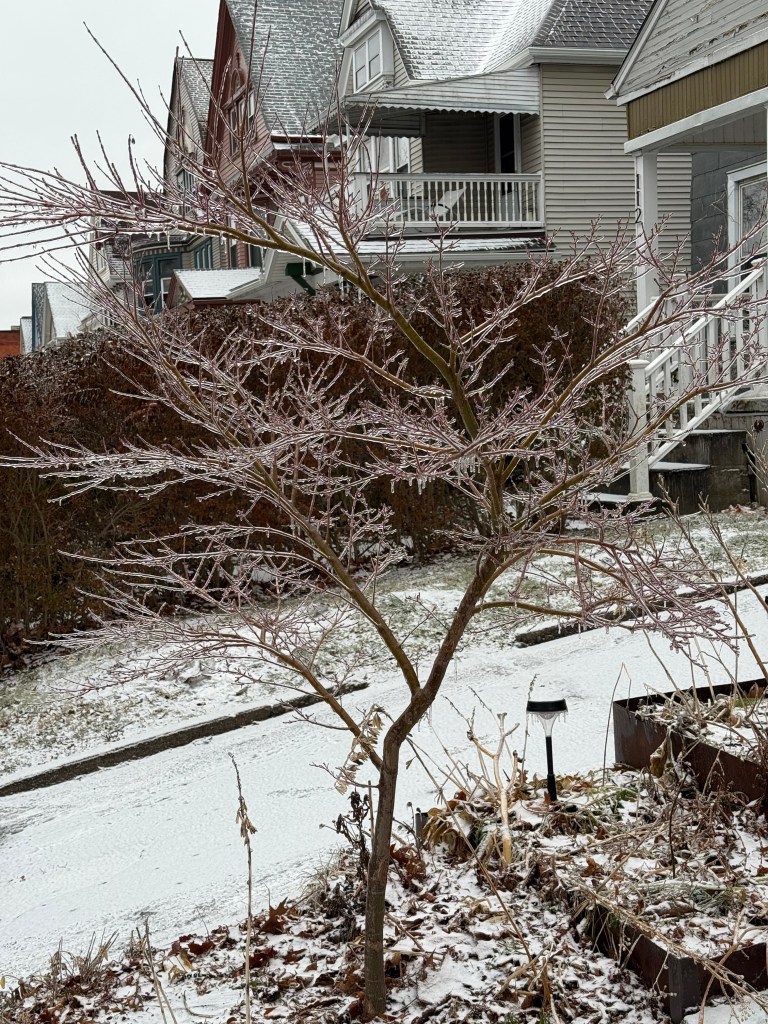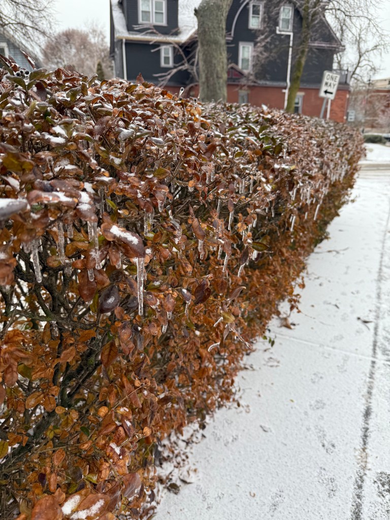 Buffalo’s weather is uncertain at times. It can be cold and blizzard like one day and then the snow melts and is rainy the next. On this day, it rained and the rain froze. Roads and sidewalks were icy and navigating them required caution and skill. Most of the sidewalks were salted while some weren’t. Nevertheless, I walked and was awestruck by how the streets of Buffalo’s lower west side were transformed into an icy wonderland. I was amazed at how beautiful the neighborhood looked in a coat of ice. The clinging ice made objects look like sculpted works of art. Some of the pictures I’m sharing do no justice in showing the true beauty of the subjects covered in frozen rain.